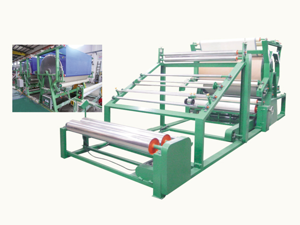 本機(jī)主要用于泡綿、針綿等材料經(jīng)上膠后與布加溫加壓貼合為一體,再經(jīng)電熱滾筒加熱烘干后卷料為成品。